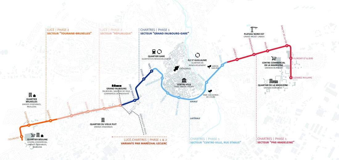 Chartres (28) • 2020 - 2025 • Projet d'aménagement et d'espace public pour la création de la première ligne de BHNS de Chartres
