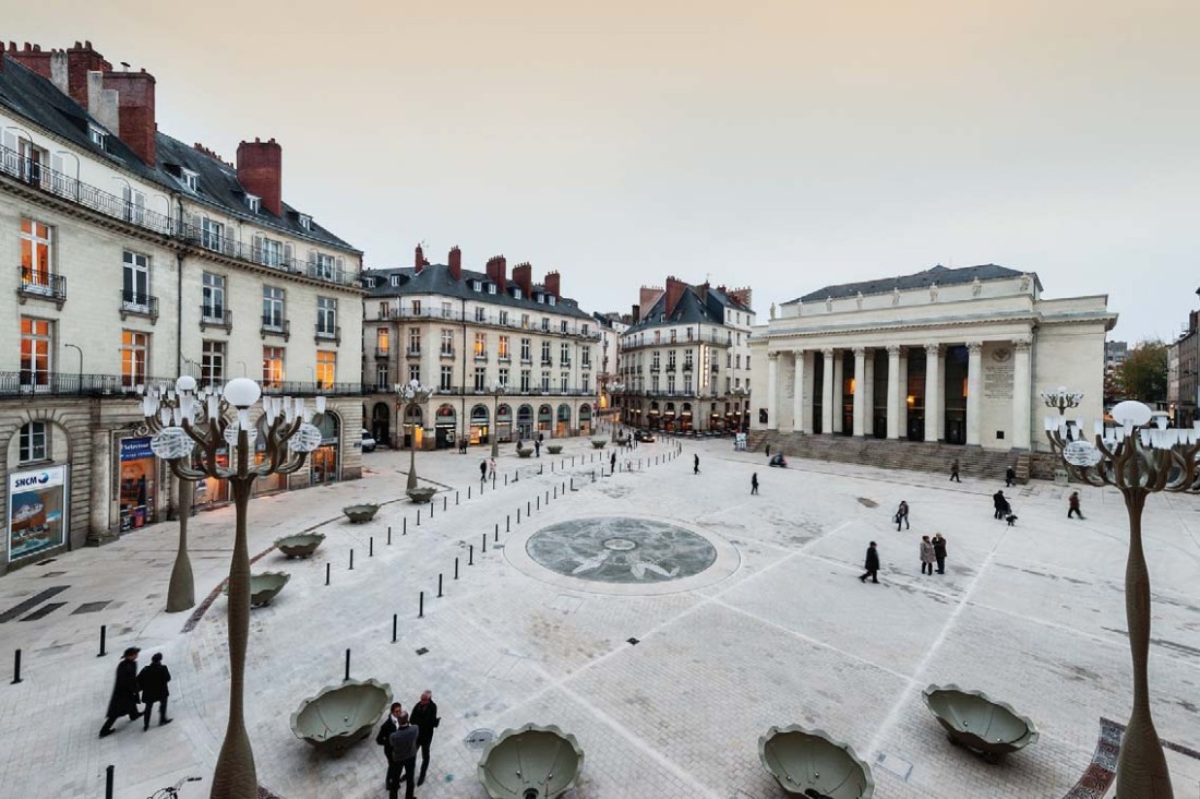 Le réaménagement de la place s’inspire des principes initiaux établis par l’architecte Crucy lors de la création de la place en 1787 tout en assurant les fonctionnalités pour les usages contemporains de terrasses commerciales, de circulation limitée des bus et des voitures,… Cette place devient ainsi un vaste plateau piétonnier bordé de terrasses mettant en valeur le théâtre Graslin et la composition urbaine. Le processus de conception de la place a fait l’objet d’une concertation publique et de réunions avec les comités de quartier. Différents scénarios ont été proposés avant de retenir celui qui a été finalement réalisé.
