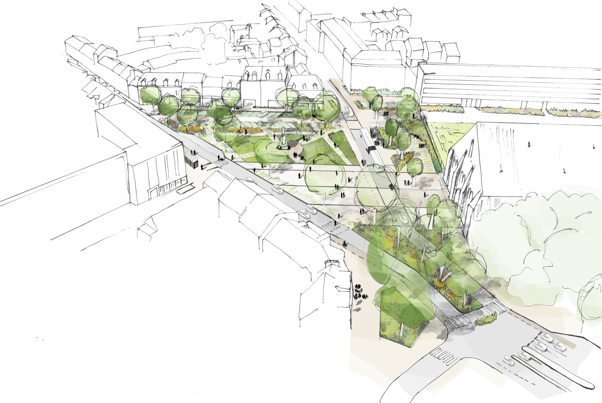 Le scénario retenu propose une place jardin, une place «mémoire du bastion historique : Eperon».