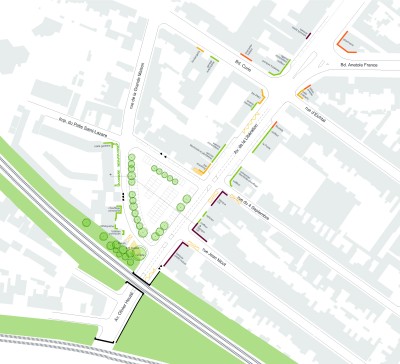 Le projet permet de concilier l’ensemble des fonctions et usages tout en intégrant l’arrivée des chronolignes et offrant un traitement unitaire de « façade à façade ».