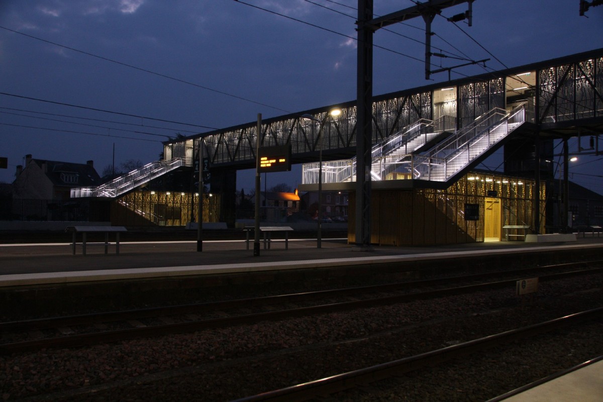 Outre le franchissement total du faisceau ferroviaire, la réalisation de cette passerelle a pour objectif de permettre l’accès PMR et sécurisé sur chacun des quais, et d’offrir une alternative d’accès par la rue de la Mare Rouge aux quais et bâtiment voyageur.