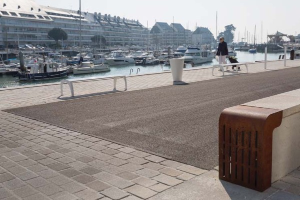 Le parti d’aménagement consiste à préserver le caractère portuaire du quai Jules Sandeau en s’inspirant de la simplicité des aménagements qui existaient au début du XXe siècle. Ceux-ci offraient une lecture claire d’un grand plan incliné vers le perré en granite accompagnant la courbe de l’étier. Les aménagements imaginés aujourd’hui tendent à concevoir un espace apaisé, dévolu principalement à la déambulation, permettant une activité portuaire (pêche ou plaisance) et confortable où l’on pourra, suivant la saison et l’heure de la journée profiter, debout ou assis, de la vue sur le port, sur les terrasses, au bord de l’étier ou à l’ombre des édifices bordant le quai.